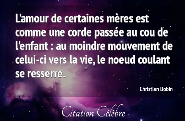 L'amour de certaines mères est comme une corde passée au cou de l'enfant : au moindre mouvement de celui-ci vers la vie, le noeud coulant se resserre.