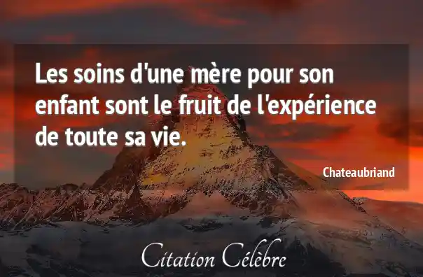 Les soins d'une mère pour son enfant sont le fruit de l'expérience de toute sa vie.