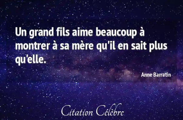 Un grand fils aime beaucoup à montrer à sa mère qu'il en sait plus qu'elle.