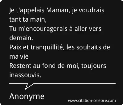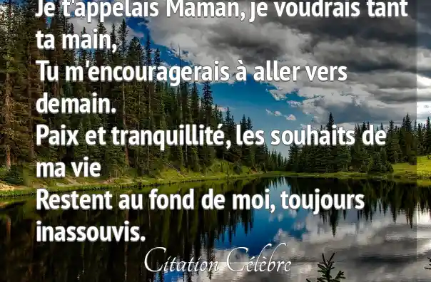 Je t'appelais Maman, je voudrais tant ta main,Tu m'encouragerais à aller vers demain.Paix et tranquillité, les souhaits de ma vieRestent au fond de moi, toujours inassouvis.