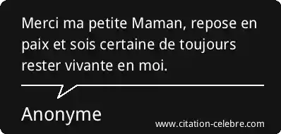 Merci ma petite Maman, repose en paix et sois certaine de toujours rester vivante en moi.