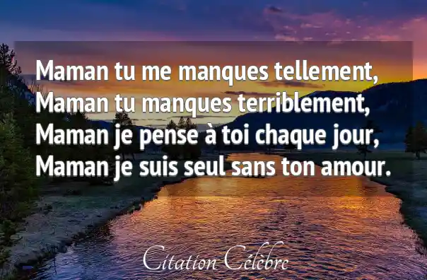 Maman tu me manques tellement,Maman tu manques terriblement,Maman je pense à toi chaque jour,Maman je suis seul sans ton amour.