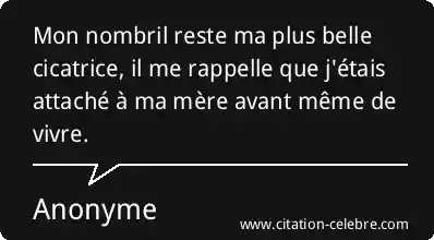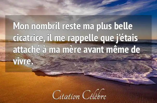Mon nombril reste ma plus belle cicatrice, il me rappelle que j'étais attaché à ma mère avant même de vivre.
