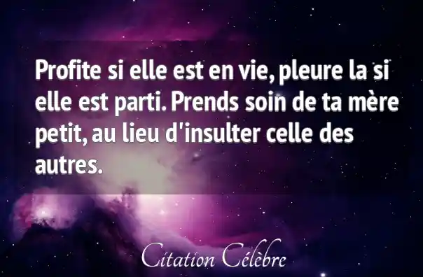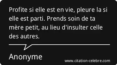 Profite si elle est en vie, pleure la si elle est parti. Prends soin de ta mère petit, au lieu d'insulter celle des autres.