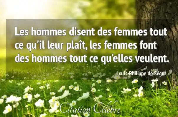 Les hommes disent des femmes tout ce qu'il leur plaît, les femmes font des hommes tout ce qu'elles veulent.