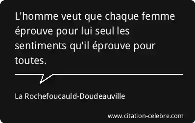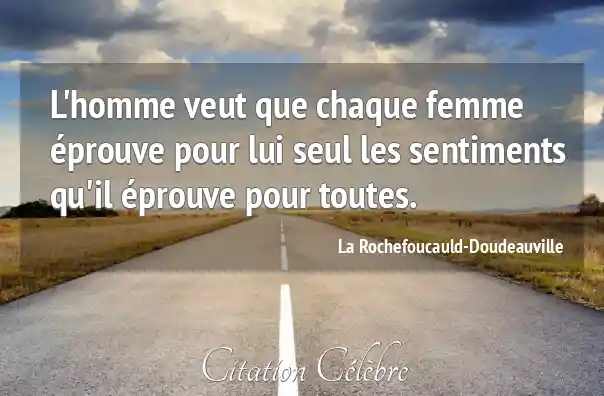 L'homme veut que chaque femme éprouve pour lui seul les sentiments qu'il éprouve pour toutes.
