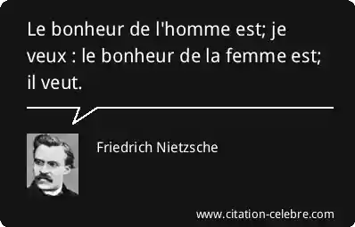 Le bonheur de l'homme est; je veux : le bonheur de la femme est; il veut.