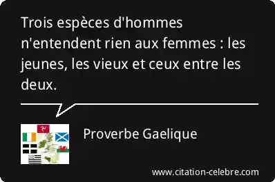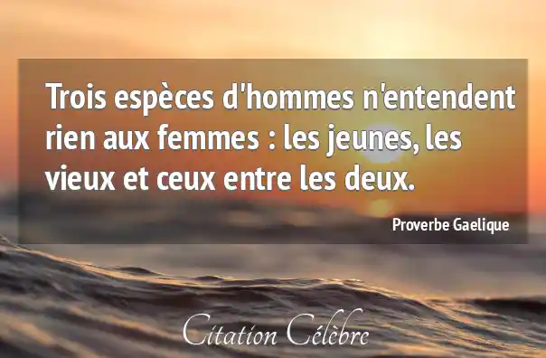 Trois espèces d'hommes n'entendent rien aux femmes : les jeunes, les vieux et ceux entre les deux.