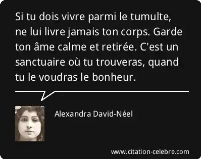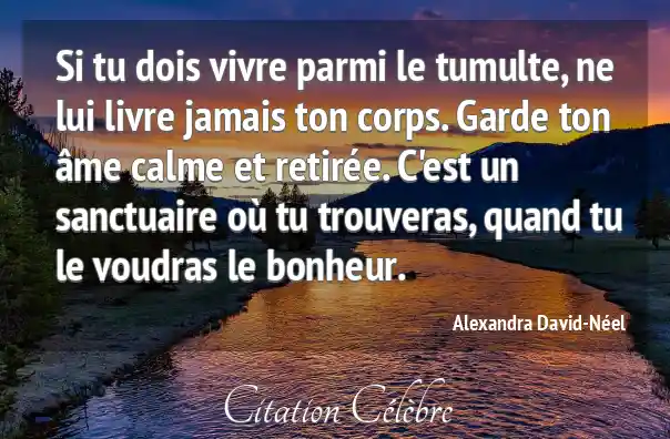 Si tu dois vivre parmi le tumulte, ne lui livre jamais ton corps. Garde ton âme calme et retirée. C'est un sanctuaire où tu trouveras, quand tu le voudras le bonheur.