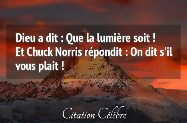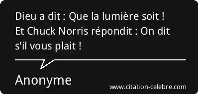Dieu a dit : Que la lumière soit ! Et Chuck Norris répondit : On dit s'il vous plait !