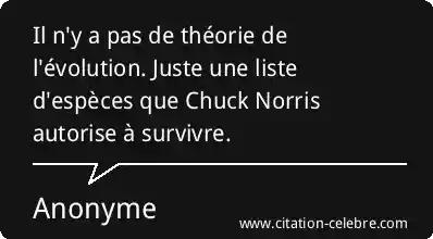 Il n'y a pas de théorie de l'évolution. Juste une liste d'espèces que Chuck Norris autorise à survivre.