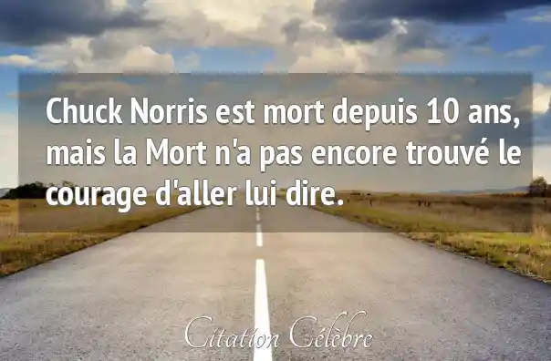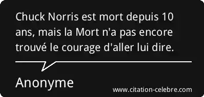 Chuck Norris est mort depuis 10 ans, mais la Mort n'a pas encore trouvé le courage d'aller lui dire.