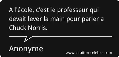 A l'école, c'est le professeur qui devait lever la main pour parler a Chuck Norris.
