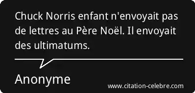 Chuck Norris enfant n'envoyait pas de lettres au Père Noël. Il envoyait des ultimatums.