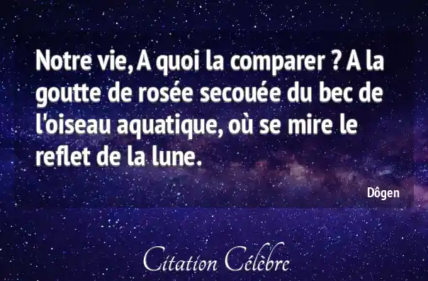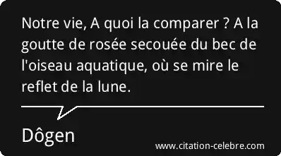 Notre vie, A quoi la comparer ? A la goutte de rosée secouée du bec de l'oiseau aquatique, où se mire le reflet de la lune.
