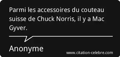 Parmi les accessoires du couteau suisse de Chuck Norris, il y a Mac Gyver.
