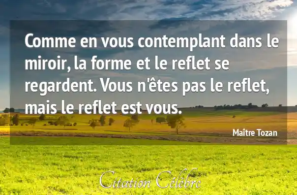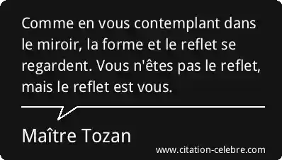 Comme en vous contemplant dans le miroir, la forme et le reflet se regardent. Vous n'êtes pas le reflet, mais le reflet est vous.