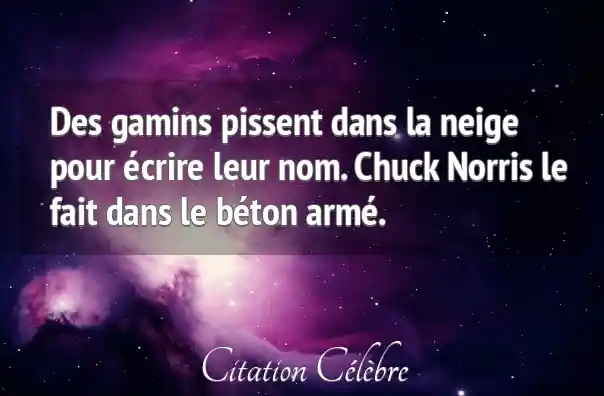 Des gamins pissent dans la neige pour écrire leur nom. Chuck Norris le fait dans le béton armé.