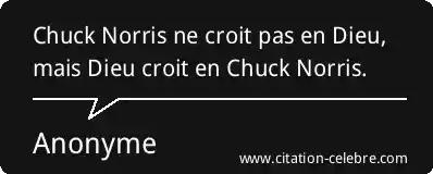 Chuck Norris ne croit pas en Dieu, mais Dieu croit en Chuck Norris.