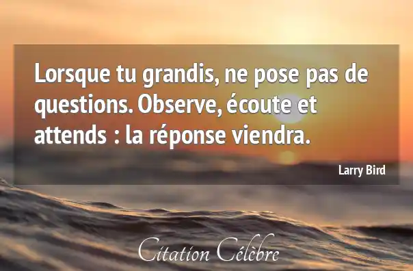 Lorsque tu grandis, ne pose pas de questions. Observe, écoute et attends : la réponse viendra.