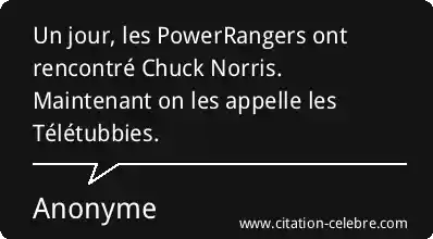Un jour, les PowerRangers ont rencontré Chuck Norris. Maintenant on les appelle les Télétubbies.