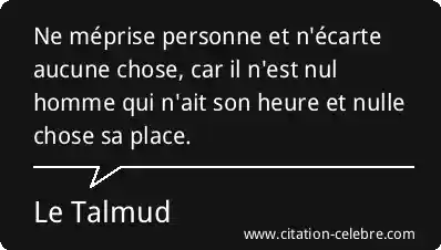 Ne méprise personne et n'écarte aucune chose, car il n'est nul homme qui n'ait son heure et nulle chose sa place.