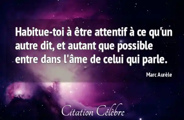 Habitue-toi à être attentif à ce qu'un autre dit, et autant que possible entre dans l'âme de celui qui parle.