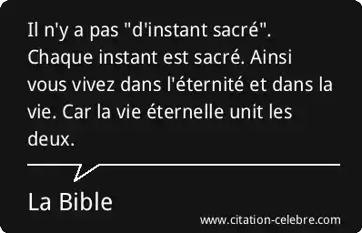Il n'y a pas "d'instant sacré". Chaque instant est sacré. Ainsi vous vivez dans l'éternité et dans la vie. Car la vie éternelle unit les deux.