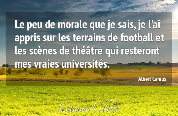 Le peu de morale que je sais, je l'ai appris sur les terrains de football et les scènes de théâtre qui resteront mes vraies universités.