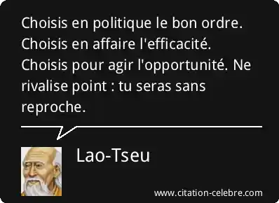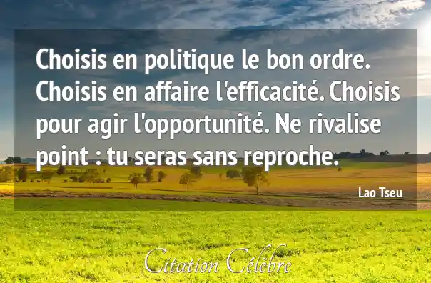 Choisis en politique le bon ordre. Choisis en affaire l'efficacité. Choisis pour agir l'opportunité. Ne rivalise point : tu seras sans reproche.