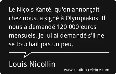 Le Niçois Kanté, qu'on annonçait chez nous, a signé à Olympiakos. Il nous a demandé 120 000 euros mensuels. Je lui ai demandé s'il ne se touchait pas un peu.