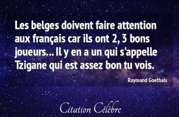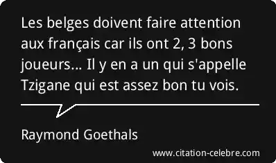 Les belges doivent faire attention aux français car ils ont 2, 3 bons joueurs... Il y en a un qui s'appelle Tzigane qui est assez bon tu vois.