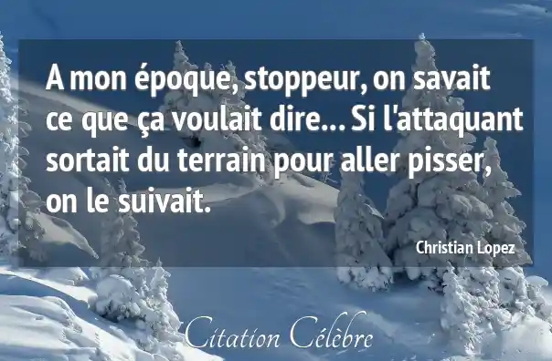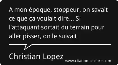 A mon époque, stoppeur, on savait ce que ça voulait dire... Si l'attaquant sortait du terrain pour aller pisser, on le suivait.