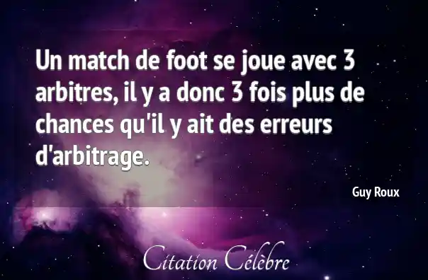 Un match de foot se joue avec 3 arbitres, il y a donc 3 fois plus de chances qu'il y ait des erreurs d'arbitrage.