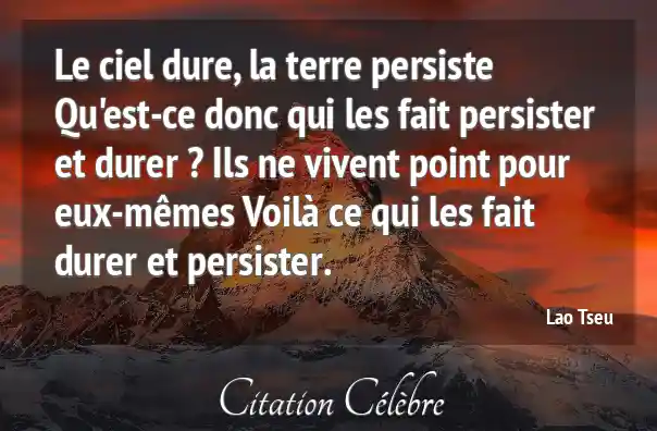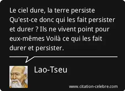 Le ciel dure, la terre persiste Qu'est-ce donc qui les fait persister et durer ? Ils ne vivent point pour eux-mêmes Voilà ce qui les fait durer et persister.