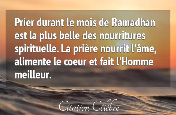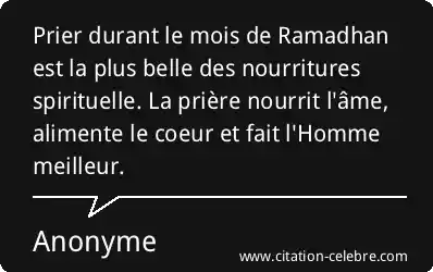 Prier durant le mois de Ramadhan est la plus belle des nourritures spirituelle. La prière nourrit l'âme, alimente le coeur et fait l'Homme meilleur.