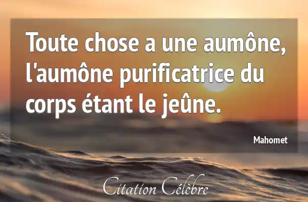 Toute chose a une aumône, l'aumône purificatrice du corps étant le jeûne.