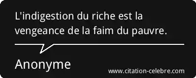 L'indigestion du riche est la vengeance de la faim du pauvre.