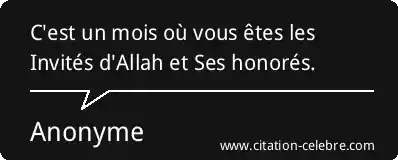 C'est un mois où vous êtes les Invités d'Allah et Ses honorés.