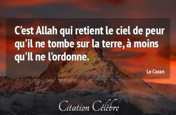 C'est Allah qui retient le ciel de peur qu'il ne tombe sur la terre, à moins qu'Il ne l'ordonne.