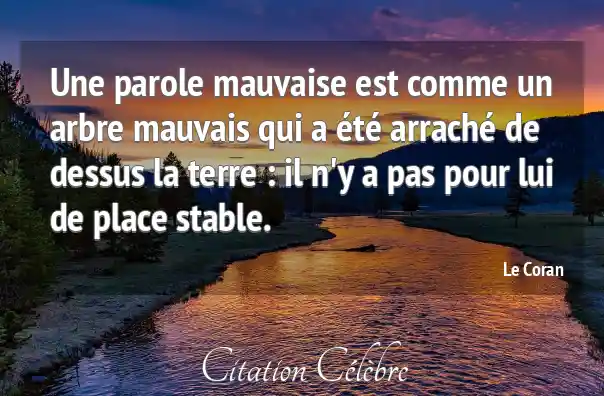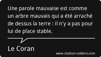 Une parole mauvaise est comme un arbre mauvais qui a été arraché de dessus la terre : il n'y a pas pour lui de place stable.