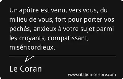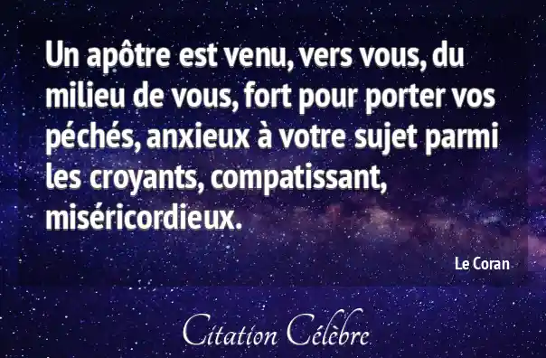 Un apôtre est venu, vers vous, du milieu de vous, fort pour porter vos péchés, anxieux à votre sujet parmi les croyants, compatissant, miséricordieux.