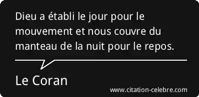 Dieu a établi le jour pour le mouvement et nous couvre du manteau de la nuit pour le repos.