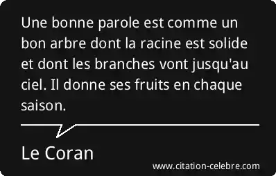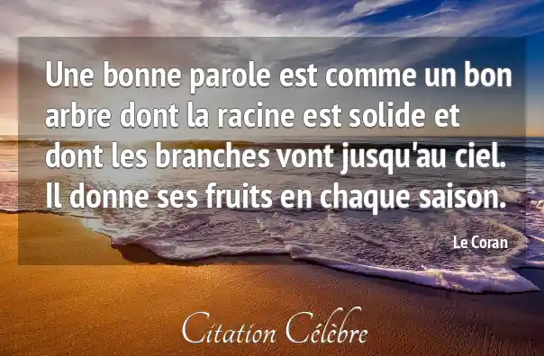 Une bonne parole est comme un bon arbre dont la racine est solide et dont les branches vont jusqu'au ciel. Il donne ses fruits en chaque saison.