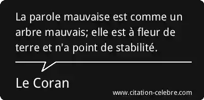 La parole mauvaise est comme un arbre mauvais; elle est à fleur de terre et n'a point de stabilité.