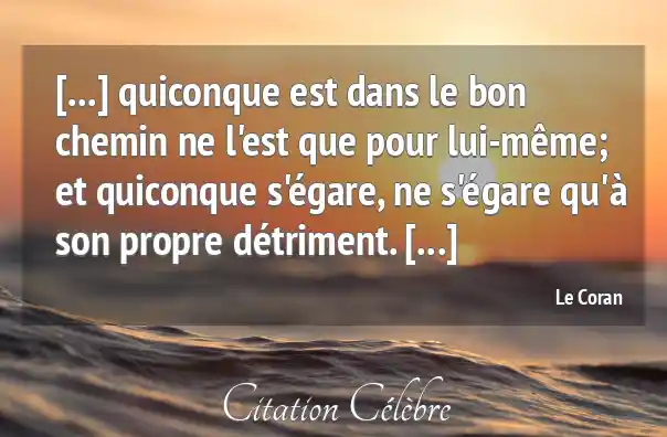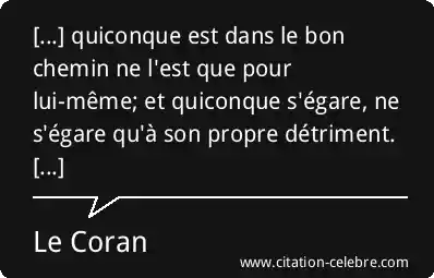 [...] quiconque est dans le bon chemin ne l'est que pour lui-même; et quiconque s'égare, ne s'égare qu'à son propre détriment. [...]