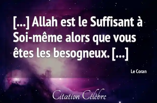 [...] Allah est le Suffisant à Soi-même alors que vous êtes les besogneux. [...]