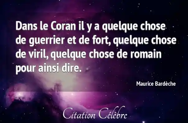 Dans le Coran il y a quelque chose de guerrier et de fort, quelque chose de viril, quelque chose de romain pour ainsi dire.