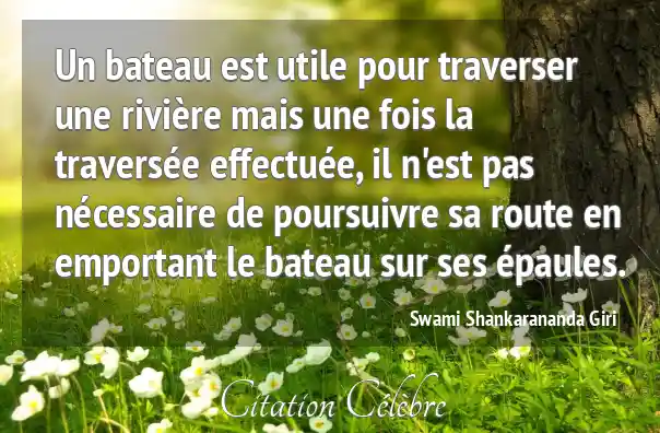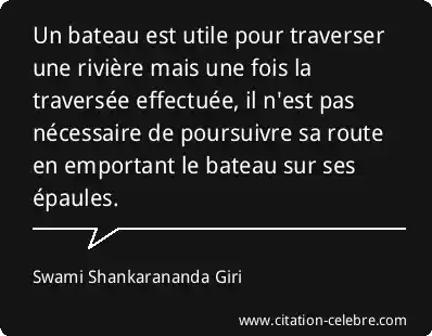 Un bateau est utile pour traverser une rivière mais une fois la traversée effectuée, il n'est pas nécessaire de poursuivre sa route en emportant le bateau sur ses épaules.