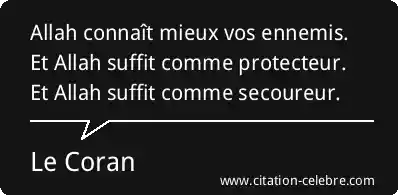 Allah connaît mieux vos ennemis. Et Allah suffit comme protecteur. Et Allah suffit comme secoureur.